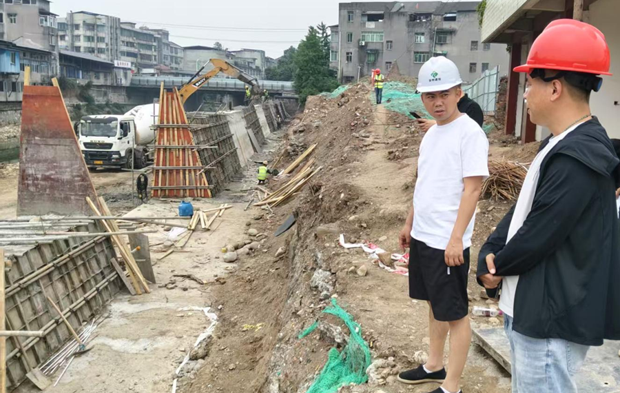 5月17日,公司副總經(jīng)理馮文生帶隊(duì)到綿陽(yáng)市安州區(qū)秀水河秀水鎮(zhèn)場(chǎng)鎮(zhèn)段防洪治理工程檢查項(xiàng)目建設(shè)情況。(素材來(lái)源:工程項(xiàng)目部 袁慶)