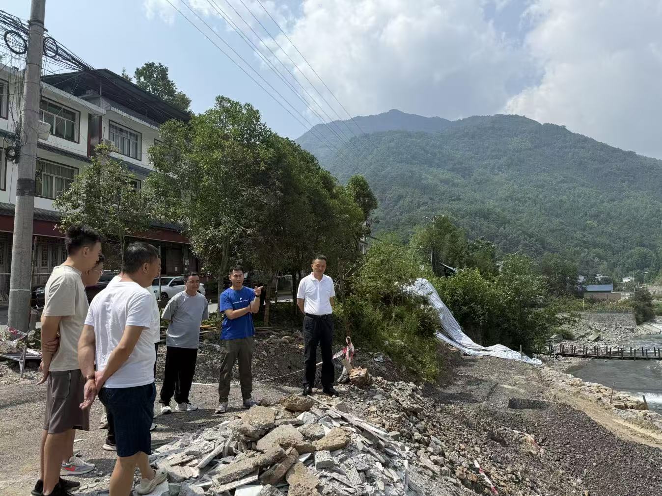7月16日,公司黨支部書記、董事長袁波帶隊到千佛鎮(zhèn)檢查西環(huán)線堤防水毀處應急搶險工作。(素材來源:項目安環(huán)中心 敬珍)